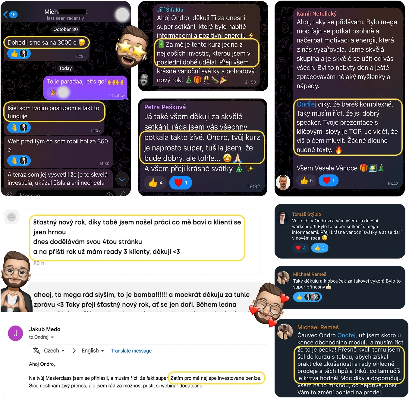 „Mega si cením toho, že si na nic nehraješ, ke všemu přistupuješ lidsky. Na začátku jsem bojoval se sebevědomím a chyběl mi jasný postup, jak webdesignem živit. Teď působím profesionálněji, neztrácím se v procesu a věřím své službe. Největší zlom přišel, když jsi ukázal, jak obhájit svou hodnotu a uzavírat zakázky s jistotou.